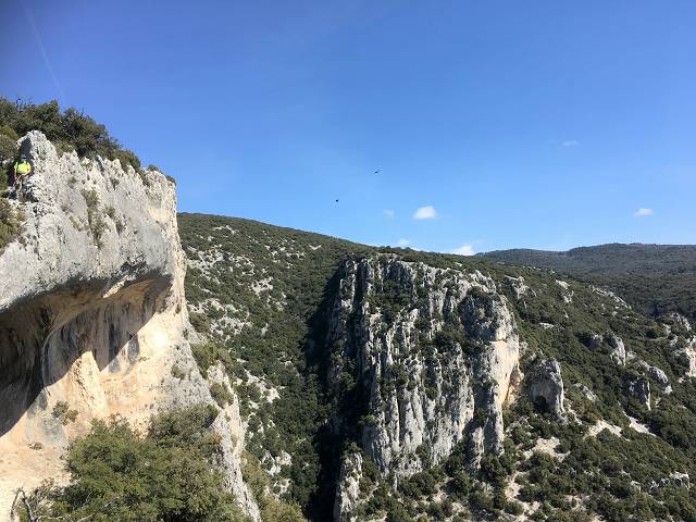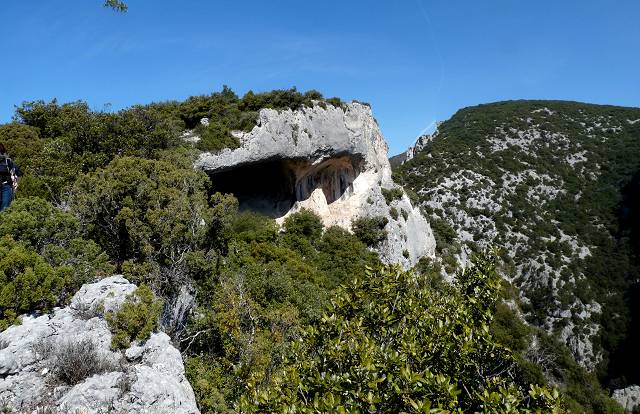 A droite, le petit triangle rouge indique l'accès aux étages supèrieurs de la Baume Roustan