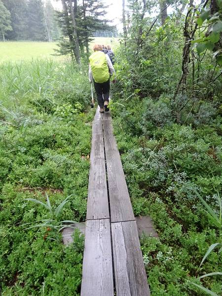 Passerelle entre le Lac de Bellefontaine et le Lac des Mortes suivie de 400 m de Platelage sur les Tourbières adjacentes* * Le platelage est un chemin sur pilotis composé de planches de bois. Ce système est particulièrement adapté aux zones humides.